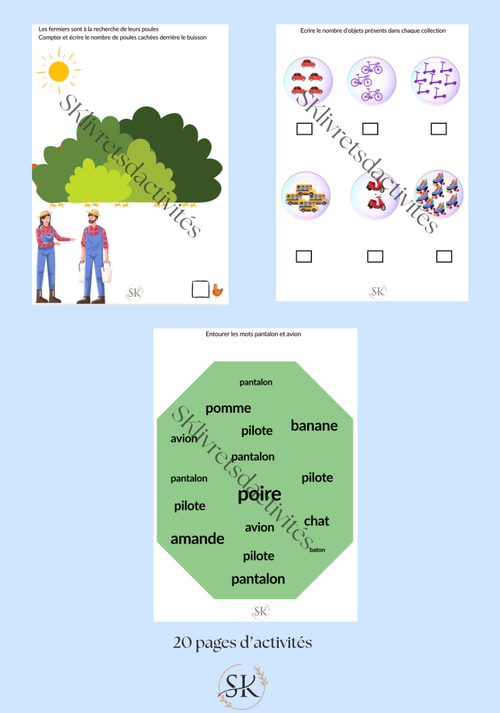 Ce livret propose différentes activités autour du langage, des mathématiques, de la motricité fine et de la découverte du monde.